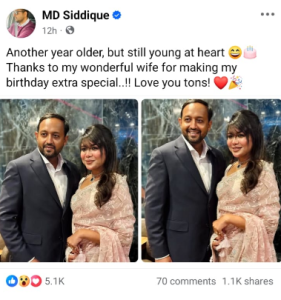 এমডি সিদ্দিক নামের সেই ব্যক্তির ফেসবুক প্রোফাইলে ঘুরে দেখা যায় দুইটি ছবি পোস্ট করে তনিকে স্ত্রী সম্বোধন করে ধন্যবাদ জানিয়েছেন লিখেছেন, “আরও একটি বছর পেরিয়ে গেল, কিন্তু মনটা এখনও তরুণ। আমার জন্মদিনকে বিশেষ করে তোলার জন্য আমার প্রিয় স্ত্রীকে অসংখ্য ধন্যবাদ। তোমাকে অনেক ভালোবাসি।”