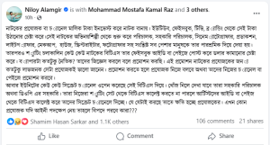 বৃহস্পতিবার নিলয় তার ফেসবুক পেজে একটি পোস্টে বলেন, পারশ্রমিক নেওয়ার পরেও যারা নাটকের বিহাইন্ড দ্য সিন (বিটিএস) ভিডিও প্রকাশ করে ডলার কামানোর চেষ্টা করেন, বিষয়টা কতটুকু নৈতিক?