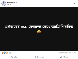 ফলাফল প্রকাশের পর এমন পরিসংখ্যান দেখে চমকে গেছেন অনেকেই। তাঁদের মধ্যে একজন জনপ্রিয় অভিনেত্রী কেয়া পায়েল। ফল প্রকাশের পর নিজের ফেসবুক পেজে তিনি তাৎক্ষণিক প্রতিক্রিয়ায় লিখেছেন, ‘এইবারের এইচএসসির রেজাল্ট দেখে আমি শিহরিত।’