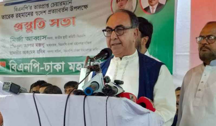 আজ ২০ ডিসেম্বর রোজ শনিবার রাজধানীর গোপীবাগে সাদেক হোসেন খোকা কমিউনিটি সেন্টারে বিএনপির ভারপ্রাপ্ত চেয়ারম্যান তারেক রহমানের স্বদেশ প্রত্যাবর্তন উপলক্ষে আয়োজিত এক প্রস্তুতিসভায় মির্জা আব্বাস প্রধান অতিথির বক্তব্যে এসব কথা বলেন ।