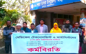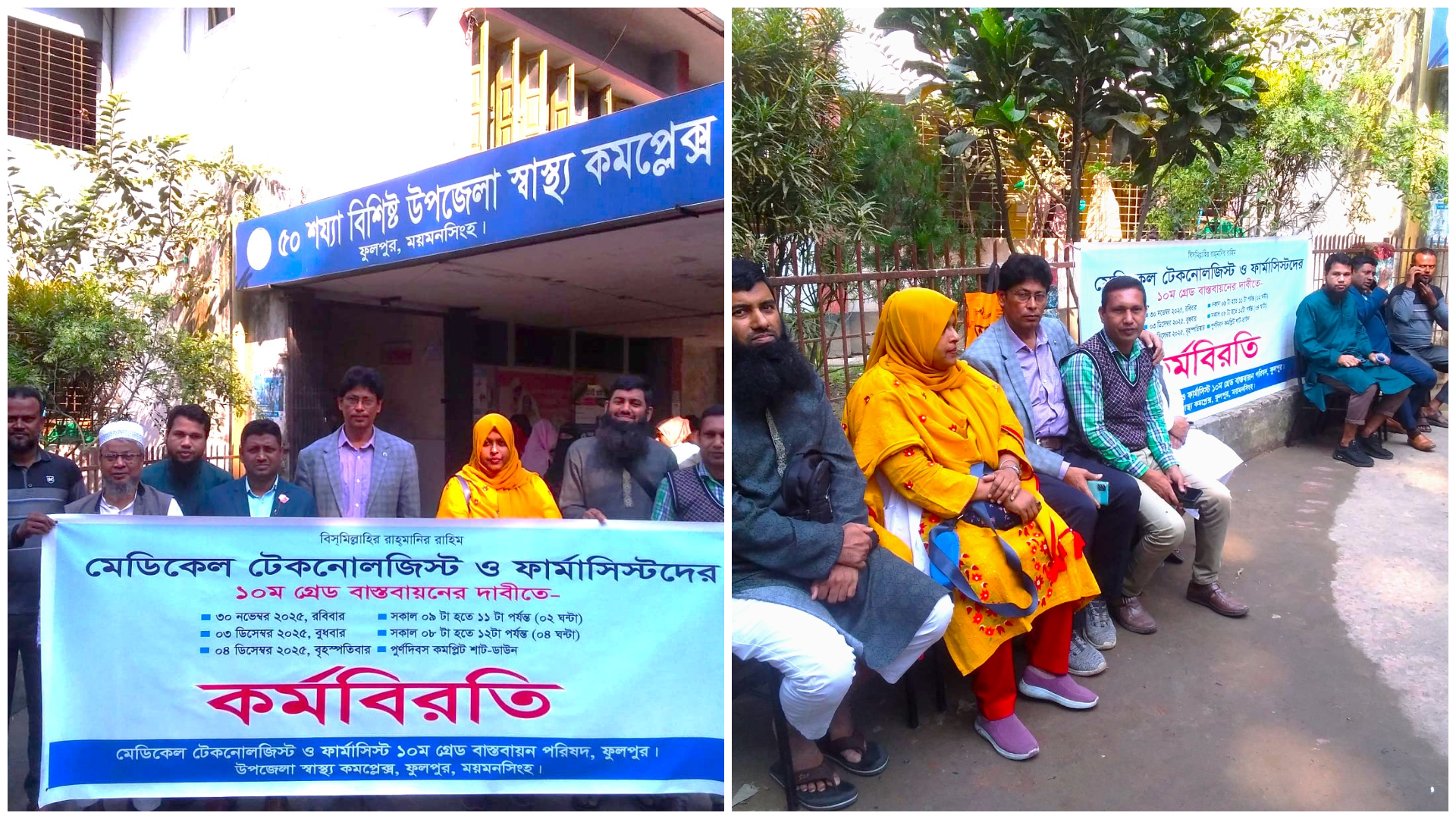 • ফুলপুরে মেডিকেল টেকনোলজিস্ট ও ফার্মাসিস্টদের কর্মবিরতি